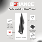 Microfibre Sports Towel Charcoal Grey featuring Defiance logo